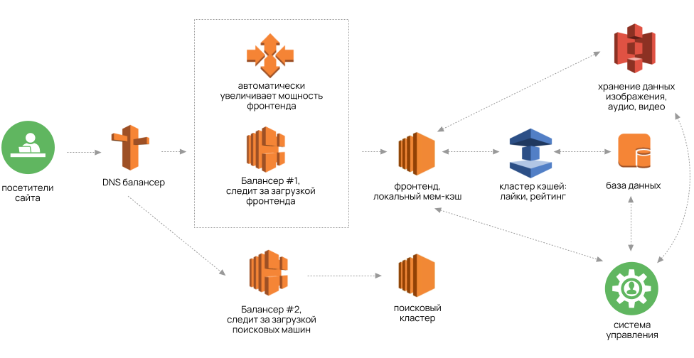 Данная схема позволяет оперативно нарастить производительность всей системы, в зависимости от текущей пиковой нагрузки.