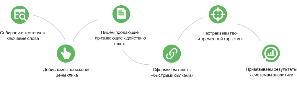 Формируем индивидуальный список поисковых запросов с высоким CTR, запускаем эффективную рекламную кампанию. Используем динамические объявления, системы ретаргетинга и ремаркетинга.